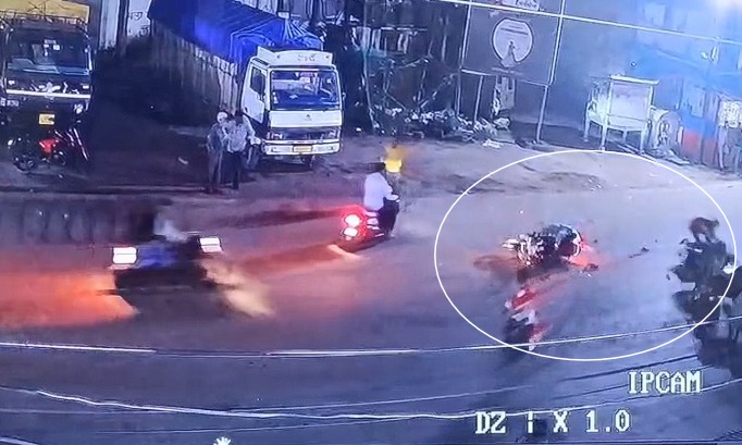 हादसे का वीडियो पास लगे सीसीटीवी कैमरे में रिकॉर्ड हुआ है, जिसमें साफ दिख रहा है कि किस तरह तेज रफ्तार में आ रही दोनों बाइक आपस में टकरा गईं।