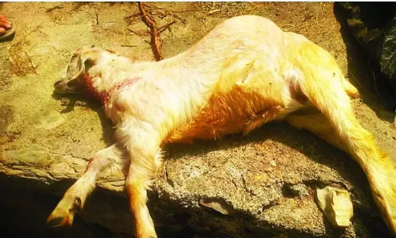Paonta Sahib. पांवटा साहिब। पांवटा साहिब उपमंडल के तहत आंजभौज क्षेत्र में एक बार फिर से तेंदुए ने दस्तक दी है। इस दौरान रुदाना गांव में तेंदुए द्वारा एक बकरे को मार डाला। जानकारी के अनुसार रुदाना गांव के प्रताप सिंह ने बताया कि तेंदुए ने उनके बकरे को उस वक्त मार डाला जब बकरे को चराने के लिए छोड़ा गया था। इस घटना के बाद ग्रामीणों में दहशत का माहौल है और यह घटना स्कूल के आसपास घटी है। अब स्कूल जाने वाले बच्चों को भी डर सता रहा है। ग्रामीणों ने वन विभाग से मांग की है कि तेंदुए को जल्द से जल्द पकड़ा जाए, ताकि यह तेंदुआ किसी पर हमला न कर सके। गौरतलब है कि पिछले वर्ष भी डांडा पागर पंचायत के डांडीवाला गांव में घर के बाहर बंधी दो बकरियों को तेंदुए ने मार