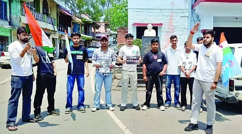 Ghumarwin. घुमारवीं। सोमवार को घुमारवीं में एनएसयूआई अध्यक्ष नितिन चढ्ढा के नेतृत्व में घुमारवीं में पाकिस्तान का विरोध किया। जिसमें भारतीय सेना जिंदाबाद, तिरंगा ही लहराया था तिरंगा ही लहराएगा, आतंकवाद मुर्दाबाद व पाकिस्तान मुर्दाबाद सहित अन्य नारे लगाए गए। भारतीय राष्ट्रीय छात्र संगठन जिला बिलासपुर के अध्यक्ष नितिन चड्ढा ने बताया की भारतवर्ष का हर एक युवा भारत की सरकार के साथ कंधा से कंधा मिलाकर खड़ा है। भारतीय सेना ने पाकिस्तान को अच्छा सबक सिखाया, लेकिन जिस तरह अमेरिका के राष्ट्रपति द्वारा युद्ध विराम का संदेश ट्वीट कर कर दिया गया, वह बहुत ही निंदनीय है। आज वह 56 इंच का सीना कहां है, क्या हम अपने देश का डिसीजन भी नहीं ले सकते, कब युद्ध करना है कब युद्ध रोकना है क्या अमेरिकी राष्ट्रपति हमें यह बताएंगे। उन्होंने प्रधानमंत्री नरेंद्र मोदी से सवाल किया कि क्यों आपके द्वारा या भारतीय सेना के प्रमुखों द्वारा युद्ध विराम का संदेश देने की बजाय अमेरिकी राष्ट्रपति द्वारा यह संदेश दिया