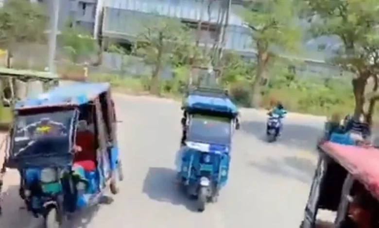 सोशल मीडिया पर वायरल वीडियो 23 सेकंड का है, जिसमें तीन ई-रिक्शा पूरे रास्ते को घेरते हुए दिखाई दे रहे हैं। दो चालक अपने ई-रिक्शा को खतरनाक तरीके से चला रहे हैं और उनकी रफ्तार भी काफी तेज है। इस दौरान सड़क पर ट्रैफिक और राहगीर भी मौजूद हैं, जिससे हादसे की आशंका बनी हुई थी।
