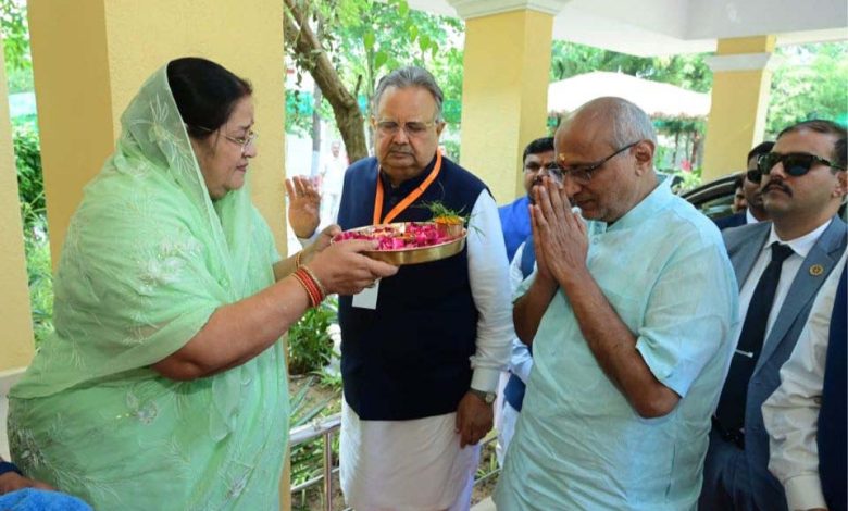 उपराष्ट्रपति सी.पी. राधाकृष्णन का विधानसभा अध्यक्ष डॉ. रमन सिंह ने किया स्वागत