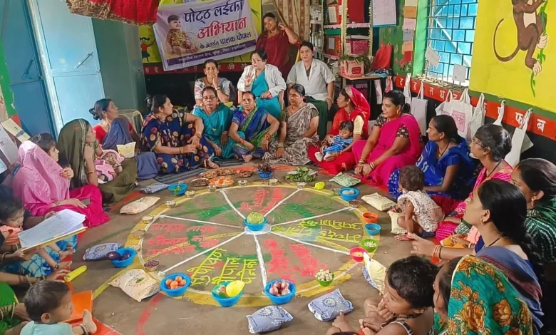 कमरछठ त्यौहार से जोड़ते हुए बच्चों के सुपोषण के प्रति किया गया जागरूक