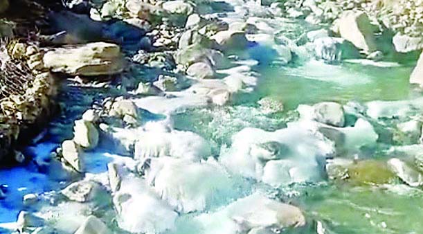 किन्नौर में बढ़ी शीतलहर, नदी-नाले का पानी लगा जमने