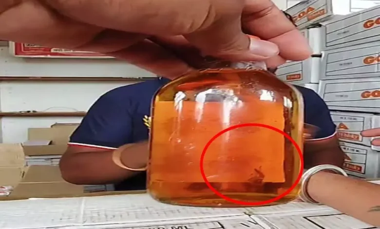 छेरीखेड़ी शराब दुकान में गोवा ब्रांड की बोतल से निकला कीड़ा, वीडियो वायरल