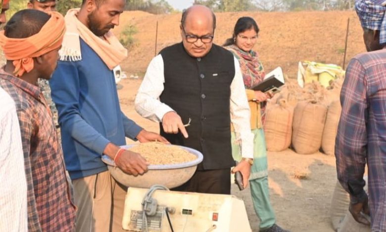 कलेक्टर उइके ने धान के नमी मापक यंत्र से स्वयं नमी की जांच की, बोरियों की गुणवत्ता परखने हाथों से धान टटोला और अपने सामने तौल प्रक्रिया का भी निरीक्षण किया। उन्होंने कहा कि किसानों की मेहनत का सही मूल्य मिलना चाहिए और तौल प्रक्रिया में पूर्ण पारदर्शिता अनिवार्य है।