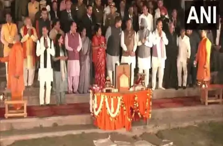 दिल्ली मुख्यमंत्री रेखा गुप्ता के रूप में पहले दिन कैबिनेट के सदस्य Yamuna Aarti में शामिल हुए