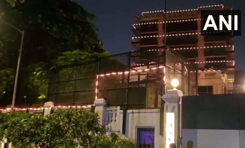 उनके जगमगाते घर के बाहर तस्वीरें लेते नजर आ रहे हैं।
