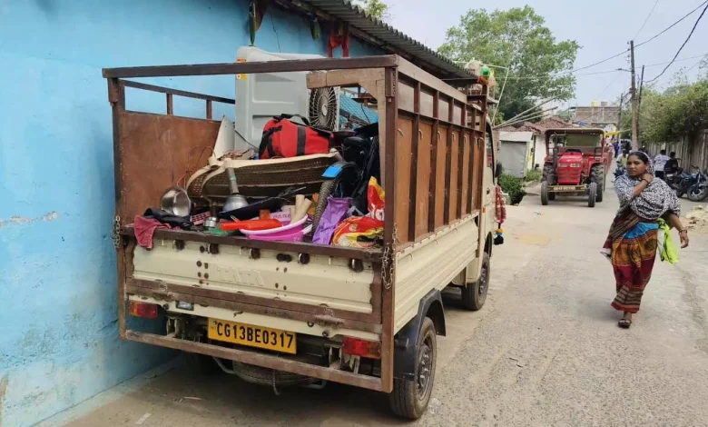 Raigarh. रायगढ़। प्रगति नगर से विस्थापित हुए परिवारों को जिला प्रशासन द्वारा मां विहार में बने प्रधानमंत्री आवास में शिफ्ट किया जा रहा है। यहां उनके रहने की व्यवस्था की गई है। लोगों के सामान की शिफ्टिंग के लिए नगर निगम की टीमें लगी हुई हैं। लोगों के सामान को लोड कर मां विहार कॉलोनी में उन्हें दिए जा रहे आवासों में कॉलोनी में पहुंचाने का काम नगर निगम द्वारा किया जा रहा है। यहां शिफ्ट हो रहे लोगों के भोजन की व्यवस्था भी की गई है।