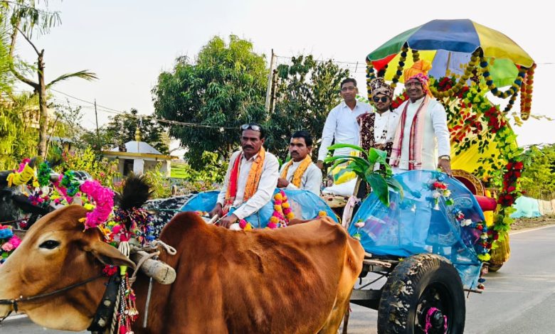 बैलगाड़ी पर सवार होकर बारात पहुंचे