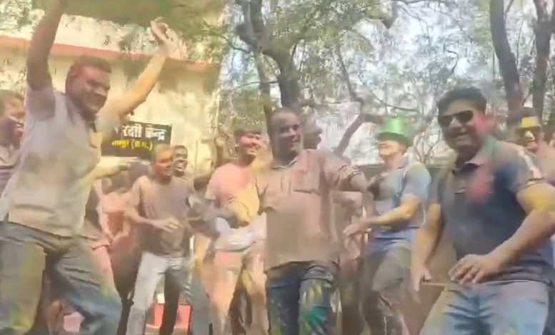रायपुर | Raipur News: राजधनी में होली का रंग पुलिस महकमे पर भी चढ़ा नजर आया। एसएसपी लालउम्मेद सिंह और कलेक्टर गौरव सिंह ने पुलिसकर्मियों संग मिलकर रंगों का त्योहार धूमधाम से मनाया। इस दौरान ‘मुन्नी बदनाम हुई’ गाने पर पुलिसकर्मियों ने जमकर ठुमके लगाए, जिससे माहौल और रंगीन हो गया।