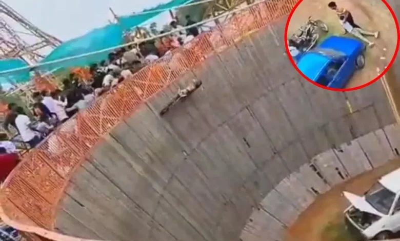 मौत का कुआ: स्टंट करते समय युवक गिरा नीचे, बिना चालक खुद घूमती रही बाइक