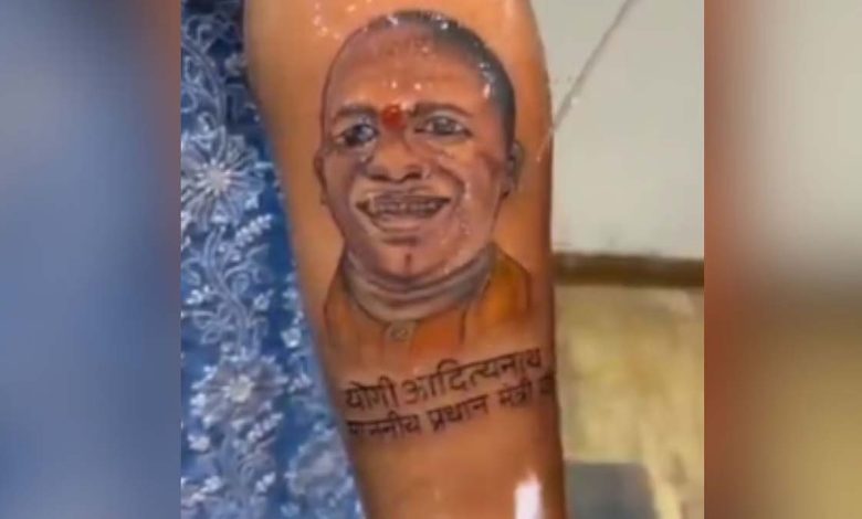 Lucknow लखनऊ : उत्तर प्रदेश के लखनऊ की एक महिला ने अपने हाथ पर मुख्यमंत्री योगी आदित्यनाथ के चेहरे का टैटू बनवाया है, जो सोशल मीडिया पर वायरल हो गया है। हिमांशी नाम की इस युवती ने चित्र के साथ “माननीय प्रधानमंत्री” भी लिखवाया है, जिससे ऑनलाइन प्रशंसा और भ्रम दोनों पैदा हो रहे हैं।