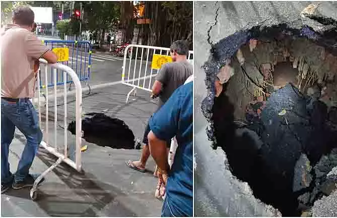 Kolkata कोलकाता:कोलकाता में पिछले कुछ दिनों से लगातार बारिश हो रही है। शनिवार को बारिश अपेक्षाकृत कम हुई। लेकिन उस रात आफत आ गई। कोलकाता की सबसे व्यस्त सड़कों में से एक, पार्क स्ट्रीट पर एलन पार्क के पास भूस्खलन हुआ। सड़क पर तीन फुट चौड़ा और पाँच फुट गहरा गड्ढा बन गया। इसे देखकर राहगीर सहम गए। मामला संज्ञान में आते ही पुलिस ने इलाके में यातायात नियंत्रित किया। बाद में, कोलकाता नगर निगम के कर्मचारी भी वहाँ पहुँचे और उस जगह की घेराबंदी कर दी गई। हालाँकि, सूत्रों ने बताया कि इस बीच दरार कई जगहों तक फैल गई थी।