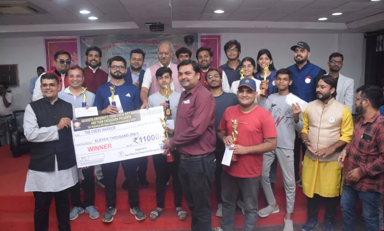 Raipur. रायपुर। आंजनेय विश्वविद्यालय और चेस सिटी रायपुर के संयुक्त तत्वावधान में शतरंज प्रतियोगिता आयोजित की गई । इस प्रतियोगिता में 208 से अधिक प्रतिभागियों ने भाग लिया। कार्यक्रम के समापन अवसर पर मुख्य अतिथि सांसद बृजमोहन अग्रवाल रहे। उन्होंने कहा कि शतरंज का खेल जीवन से गहराई से जुड़ा हुआ है, क्योंकि इसमें लिए जाने वाले फैसले और रणनीतियाँ हमारे जीवन के निर्णयों को प्रतिबिंबित करते हैं। शतरंज सिखाता है कि सोच-समझकर और धैर्यपूर्वक निर्णय लेना कितना महत्वपूर्ण है, ठीक वैसे ही जैसे जीवन में हमें हर कदम पर विचार करना पड़ता है । शतरंज धैर्य, योजना और सही समय पर सही निर्णय लेने की कला सिखाता है, जो हमारे व्यक्तिगत और व्यावसायिक जीवन में सफलता के लिए आवश्यक गुण हैं । विश्वविद्यालय के कुलाधिपति अभिषेक अग्रवाल ने कहा कि विद्यार्थी जीवन में शतरंज ध्यान और योग की तरह है।