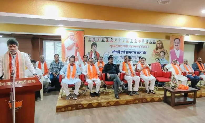 और मंडल अध्यक्षों का सम्मान समारोह आयोजन किया गया आयोजित कार्यक्रम में विशेष रूप से विधायक गण , आयोग अध्यक्ष और प्रदेश भाजपा और शहर जिला के पदाधिकारियों सहित बड़ी संख्या में रायपुर शहर जिला के कार्यकर्ता उपस्थित थे उक्त कार्यक्रम में मुख्य अतिथि के रूप में भारतीय जनता पार्टी प्रदेश अध्यक्ष किरण सिंह देव उपस्थित थे उन्होंने सर्वप्रथम रायपुर शहर की सम्मानित महिला सामाजिक कार्यकर्ताओं को शॉल श्रीफल और प्रतीक चिन्ह भेंट कर सम्मानित किया उन्होंने कार्यकताओं को संबोधित करते हुए कहा कि उन्होंने उपस्थित विभिन्न समाज वर्ग की सम्मानित महिलाओं को सम्मानित करते हुए कहा आपको सम्मानित करते हुए हम सभी गौरवान्वित महसूस कर रहे हैं ।हमने लोकमाता अहिल्या बाई होलकर की त्रिशताब्दी जयंती पर लगातार कार्यक्रम आयोजित किए जिसमें संगोष्ठी, चित्रकला, रंगोली जैसे कार्यक्रम किए गए। उन्होंने आगे कहा इस कार्यक्रम की आवश्यकता क्यों पड़ी यह भी जानना आवश्यक है इसका मूल कारण समाज में अपना बहुमूल्य योगदान दें रही है सरकारी, सामाजिक और धार्मिक क्षेत्रों में हमारी नारीशक्ति ने स्वयं को अपने परिवार को और साथ ही साथ देश को स्थापित करने में महत्वपूर्ण योगदान हमारी मातृशक्ति का रहा है और हम इस तरह के कार्यक्रमों के माध्यम से उनका गाहे बगाहे सम्मान करते हैं ।हमारा देश मातृशक्ति का देश है पूरे विश्व में केवल हमारा देश है जिसे माता का दर्जा दिया जाता है। सत्रहवीं शताब्दी में लोकमाता अहिल्या बाई होलकर का जन्म सामान्य गरड़िया परिवार में हुआ और विवाह राज परिवार में हुआ अल्प आयु में उनके वर देवलोक गमन कर गए उसके पश्चात उन्होंने 26 वर्ष का शासन किया और अपने शासन में जनता के विकास पर प्रमुखता से कार्य किया जिसमें धार्मिक पुनरुद्धार , सामाजिक पुनरुद्धार प्रमुखता से है और यदि आप देखेंगे तो आज हमारे प्रधानमंत्री नरेंद्र मोदी उनसे प्रेरित होकर अपने कार्यकाल का निर्वहन किया और अपनी योजनाओं में उनकी प्रेरणा को प्रमुखता से रखा।