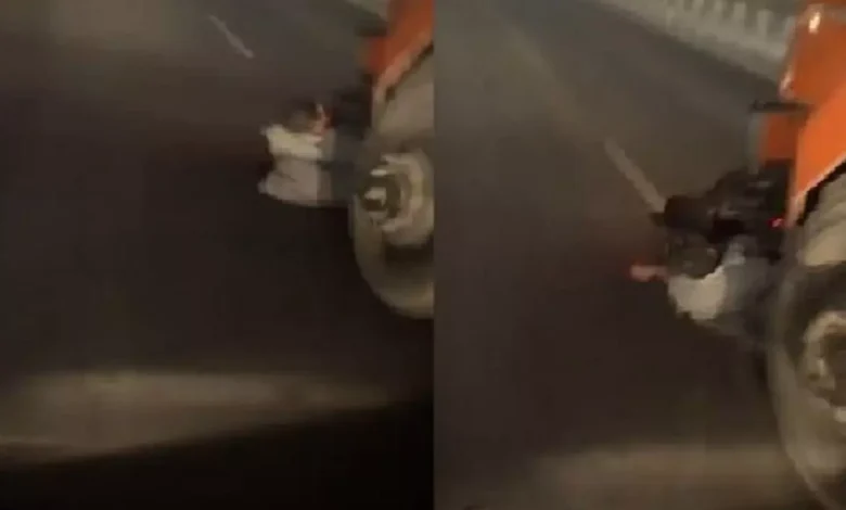 Agra आगरा : उत्तर प्रदेश के आगरा से एक बेहद हैरान कर देने वाला मामला सामने आया है। जिसका वीडियो अब सोशल मीडिया पर वायरल हो रहा है। बता दें कि हाइवे पर ट्रक ने एक बाइक को टक्कर मार दिया। जिसके बाद बाइक सवार दो लोग ट्रक के आगे गिर गए। जिसकी वजह से वे दोनों बाइक के साथ ट्रक के आगे फंस गए थे। वहीं ट्रक डाइवर ने ट्रक को रोकने के बजाय अपनी जान बचाने के लिए ट्रक को फूल स्पीड में ट्रक को भगाने लगा। जबकि ट्रक के आगे गिरे दोनों युवक ट्रक ड्राइवर और कंडक्टर से ट्रक रोकने की गुहार लगा रहे है, पर ट्रक ड्राइवर ने उनकी एक न सुनी। वायरल हो रहे इस वीडियो में आप देख सकते हैं कि दोनों किस तरह से अपनी जान बचाने के लिए ट्रक ड्राइवर से गिड़गिड़ा रहे है। वहीं ट्रक ट्राइवर तेज रफ्तार में