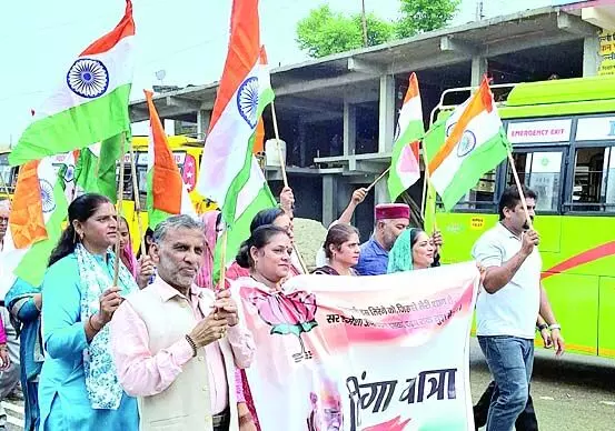 लाखों वीर जवानों और स्वतंत्रता सेनानियों ने आजादी की इस लड़ाई में अहम भूमिका निभाई। उनके चट्टान की तरह मजबूत इरादों और बुलंद हौसलों ने अंग्रेजों को देश छोडऩे पर मजबूर कर दिया। तिरंगा देश के राष्ट्रीय गौरव, साहस, शौर्य और अभिमान का एक ऐसा प्रतीक है, जिसे देखकर हर भारतीय का हृदय देशभक्ति के भाव से भर जाता है। यह नई पीढ़ी को आजादी के संघर्ष से अवगत करवाकर उन्हें देश के साथ जोडऩे का अवसर प्रदान करने तथा उनमें देशप्रेम की भावना विकसित करने के साथ ही जन-जन में राष्ट्र प्रेम का भाव भी पैदा करता है। तिरंगा यात्रा में झंडूता भाजपा मंडल अध्यक्ष रसम सिंह चंदेल, भाजपा महिला मोर्चा की जिला अध्यक्ष शैलजा शर्मा, मंडल अध्यक्ष कंचन धीमान तथा भाजयुमो अध्यक्ष समेत लगभग 150 कार्यकर्ताओं ने भाग लिया।