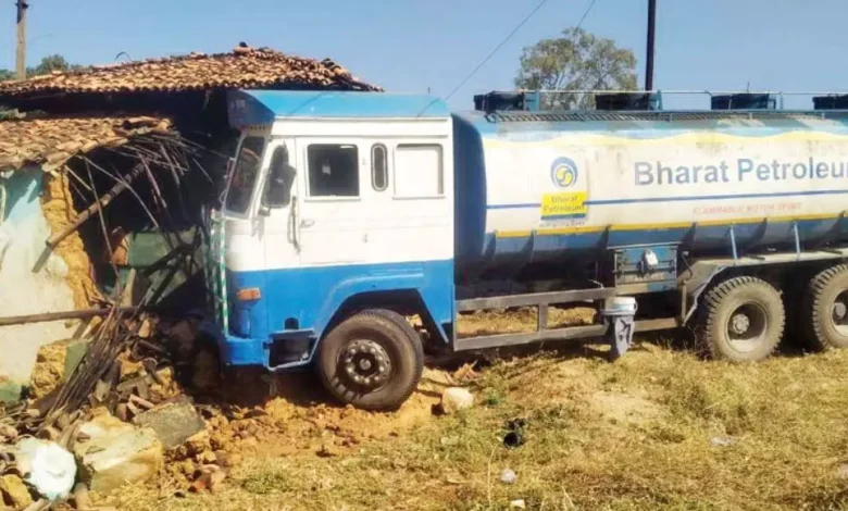 CG: डीजल लोड टैंकर बेकाबू होकर घर में जा घुसा, मचा हड़कंप
