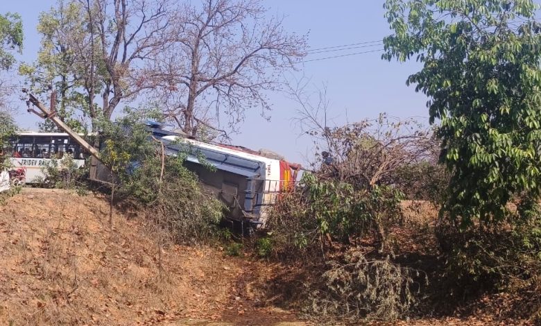 CG ACCIDENT : डीजल से भरा टैंकर पलटा