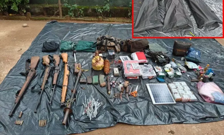 PLGA Coy No5 के रूप में पहचान हुई है। मौके से 303 राइफल, 315 राइफल, बीजीएल लांचर, भरमार बंदूक सहित भारी मात्रा में विस्फोटक सामान व अन्य नक्सली दैनिक उपयोगी सामग्री बरामद हुई।