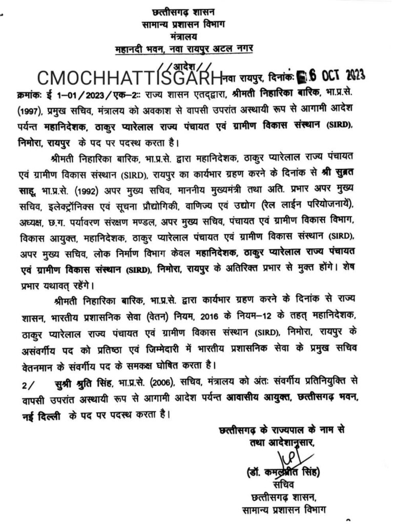 IAS के तबादले, आचार संहिता के पहले छत्तीसगढ़ सरकार ने जारी की तबादले की सूची