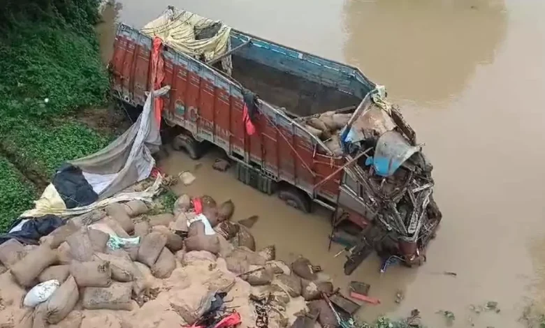 CRIME NEWS: नदी में गिरी गेहूं से भरी ट्रक, मचा हंगामा