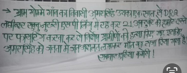 नक्सल वारदात ; जनअदालत में युवक की निर्मम हत्या, बैनर लगाकर की हत्या की घोषणा