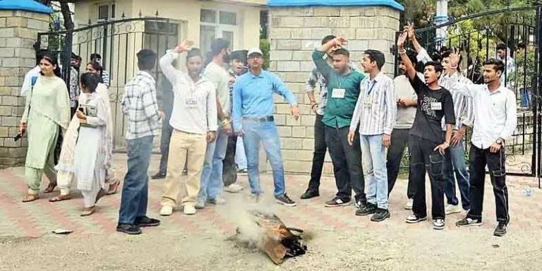 Hamirpur. हमीरपुर। राजकीय महाविद्यालय हमीरपुर में एनएसयूआई इकाई द्वारा बीते कुछ दिनों से महिलाओं के साथ बढ़ते दुष्कर्मों व गलत मानसिकता के खिलाफ बुधवार को कॉलेज गेट के बाहर चंबा के चुराह विधानसभा क्षेत्र के विधायक हंसराज का पुतला जलाया और उसके खिलाफ जमकर नारेबाजी की गई। एनएसयूआई कैंपस अध्यक्ष शिवांशू धीमान व उपाध्यक्ष अंकित कुमार और शुभम सहोत्रा की अध्यक्षता में छात्रों ने कॉलेज गेट पर चुराह के