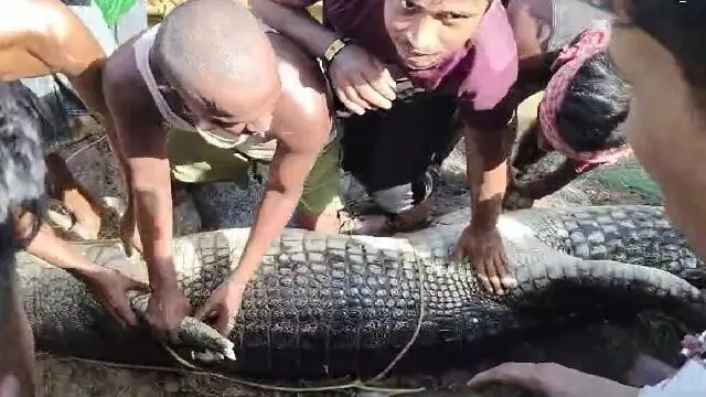 Odisha के पुरी जिले में दया नदी में मछुआरों ने पकड़ा मगरमच्छ