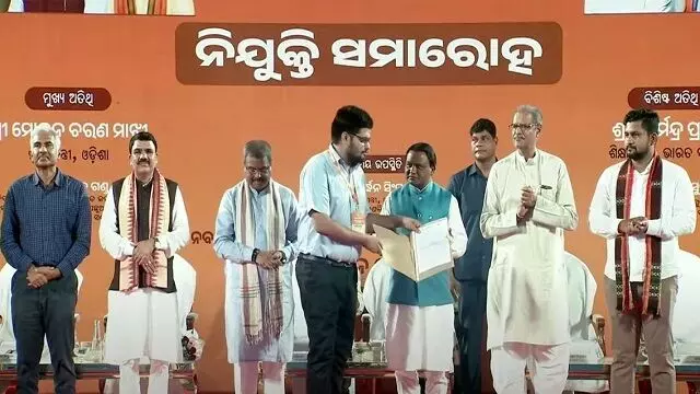 Odisha ओडिशा: ओडिशा के मुख्यमंत्री मोहन चरण माझी ने शनिवार को राजधानी भुवनेश्वर के कलिंगा स्टेडियम में आयोजित एक कार्यक्रम में सोलह हजार नौ जूनियर शिक्षकों को नियुक्ति आदेश वितरित किए। इस अवसर पर केंद्रीय शिक्षा मंत्री धर्मेंद्र प्रधान भी मौजूद थे। खबरों के मुताबिक, आज भुवनेश्वर में आयोजित एक कार्यक्रम में 16,009 जूनियर शिक्षकों को नियुक्ति आदेश दिए गए। इस कार्यक्रम में ओडिशा के सीएम मोहन चरण माझी मुख्य अतिथि थे।