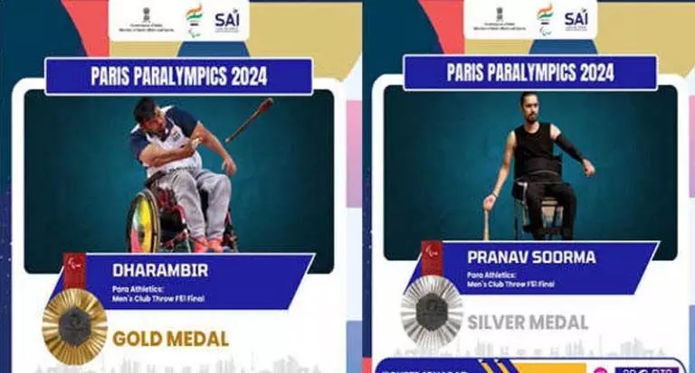 Paris Paralympics: क्लब थ्रो में धर्मबीर ने स्वर्ण, प्रणव ने जीता रजत