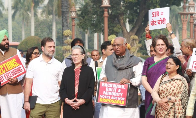 SIR को लेकर संसद परिसर में विपक्ष का हंगामा, कांग्रेस नेतृत्व ने जताई नाराज़गी