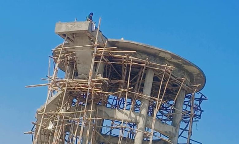 मजदूरी का पैसा न मिलने पर महिला निर्माणाधीन टंकी पर चढ़ी