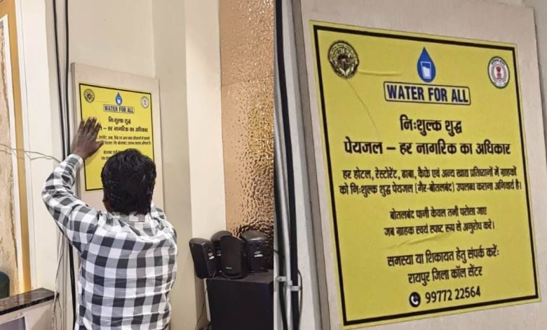 रायपुर। RAIPUR NEWS : मुख्यमंत्री विष्णु देव साय के निर्देशन एवं कलेक्टर डॉ. गौरव सिंह के मार्गदर्शन में जिला प्रशासन द्वारा “Water for All” अभियान के अंतर्गत जिले के समस्त होटल, रेस्टोरेंट, ढाबा एवं अन्य खाद्य प्रतिष्ठानों में नागरिकों को निःशुल्क शुद्ध पेयजल उपलब्ध कराए जाने हेतु नियमित मॉनिटरिंग की जा रही है।
